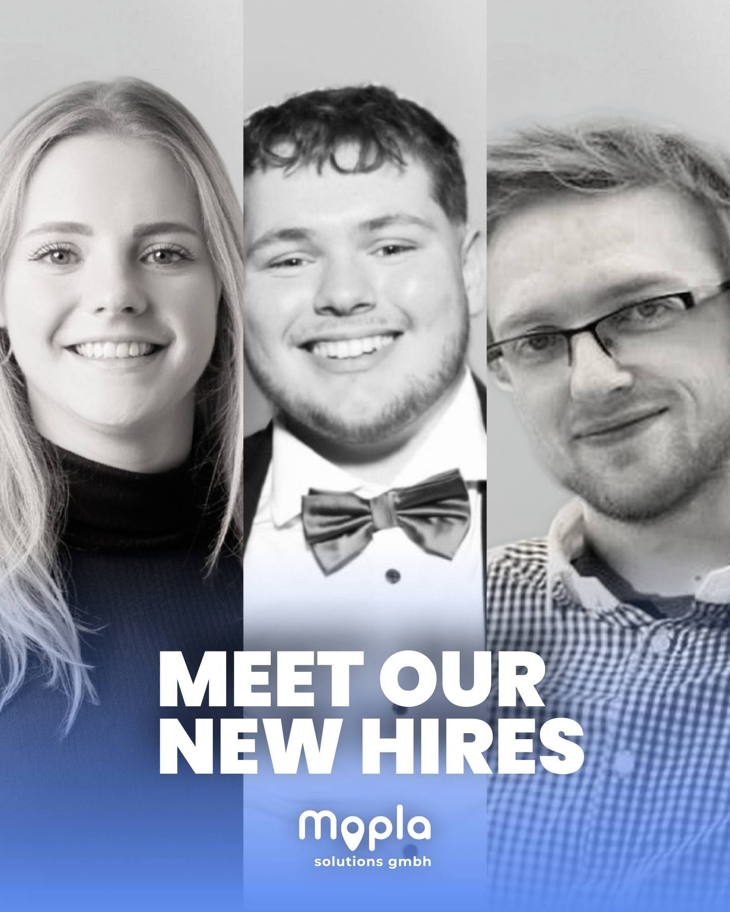 Siamo lieti di dare il benvenuto a tre nuovi colleghi in MoPla, che rafforzeranno ulteriormente settori importanti quali assistenza, tecnologia e risorse umane.
